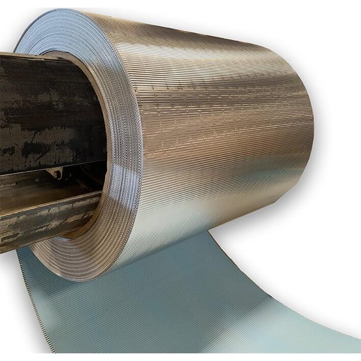 Aluminium 3/16° Corrugated (Cross-Crimped/Reeded/ 5mm corrugated) finish consists of parallel grooves or crimps about 3/16° apart running in the length direction of the pipe.